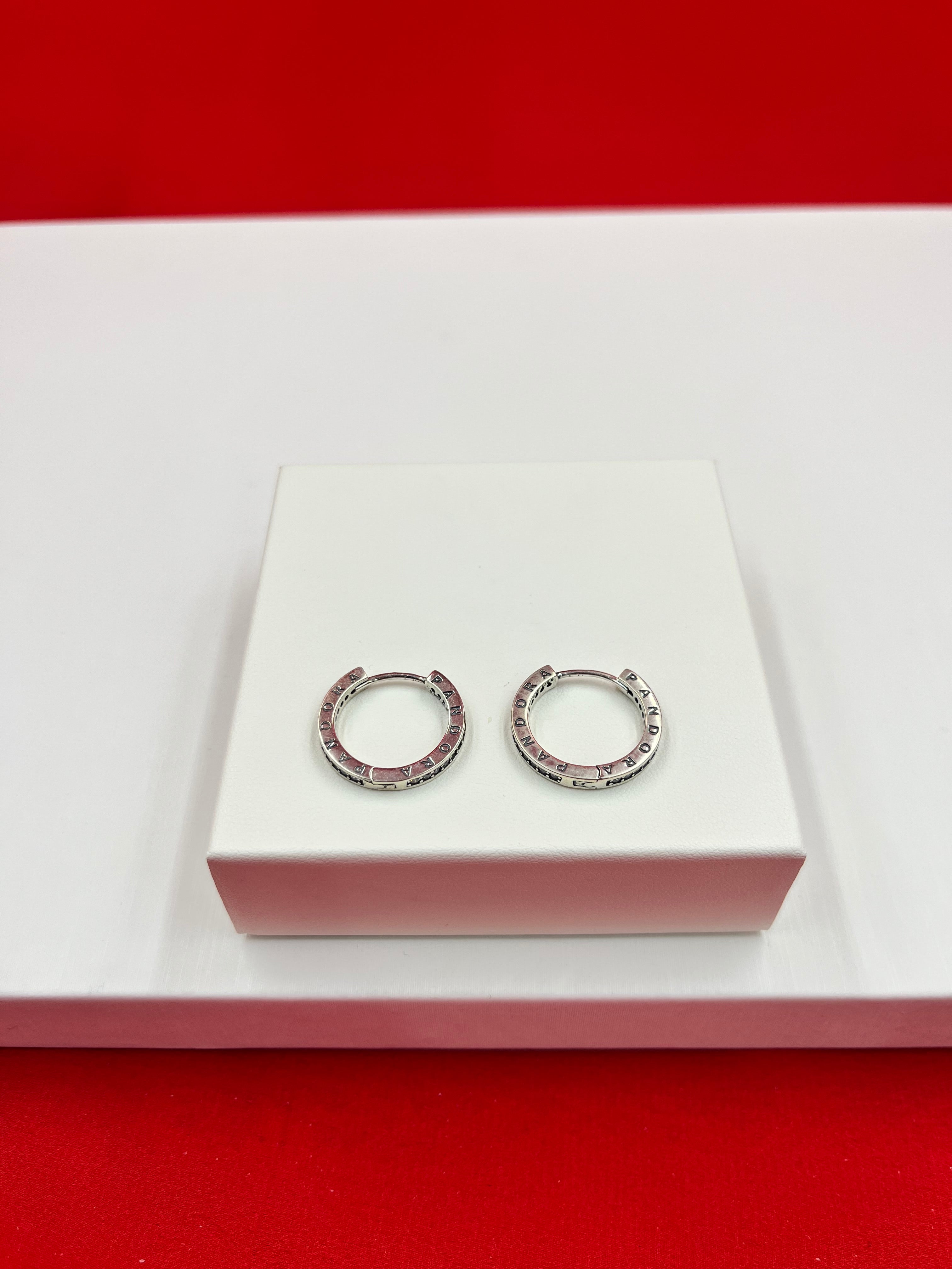 ▪️ The hoops prominently feature the Pandora engraved around the outer surface, giving them a luxurious and iconic look.