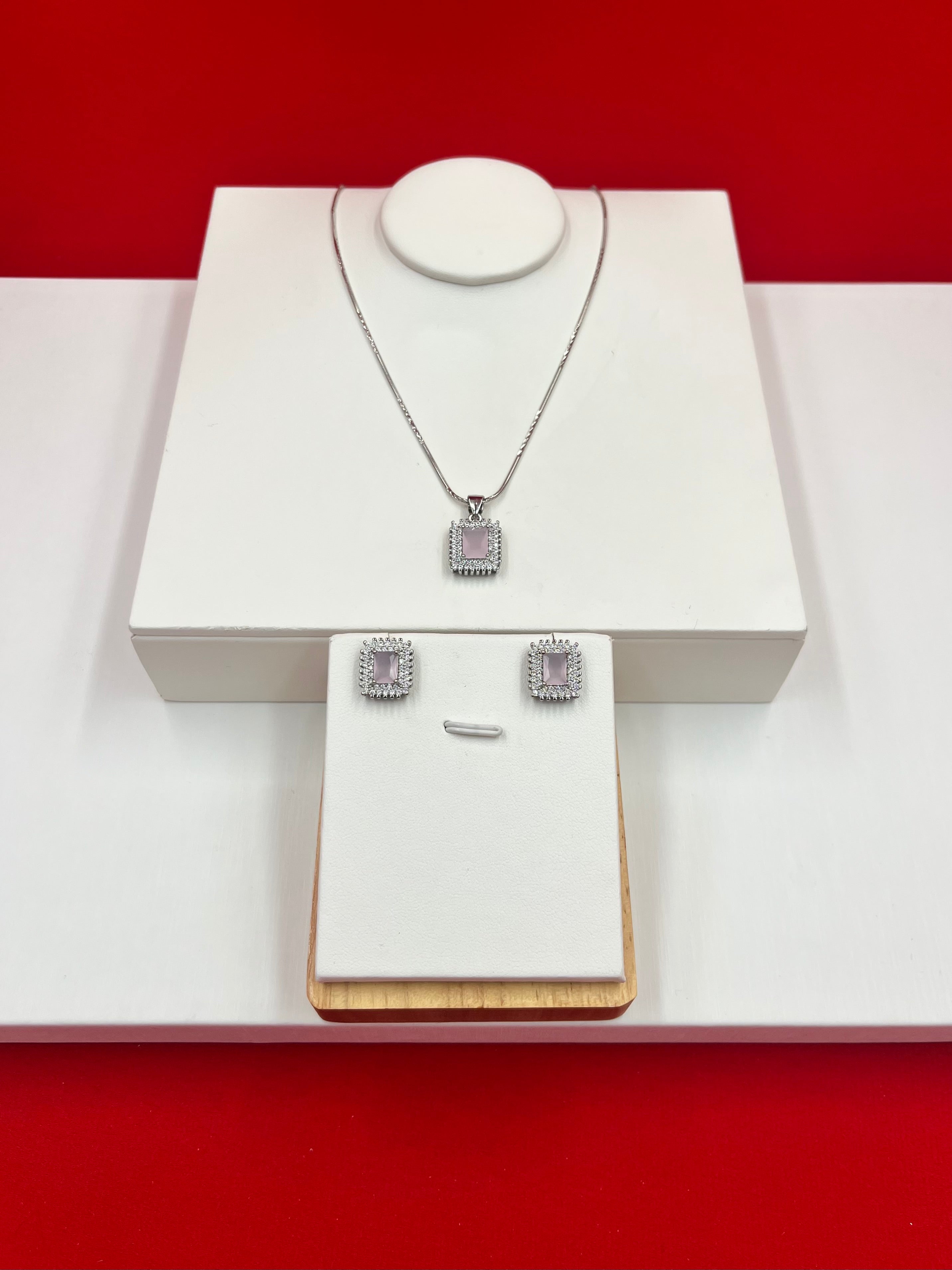 ▪️Stunning Pink Square Glow pendant Necklace with sleek chain and earrings