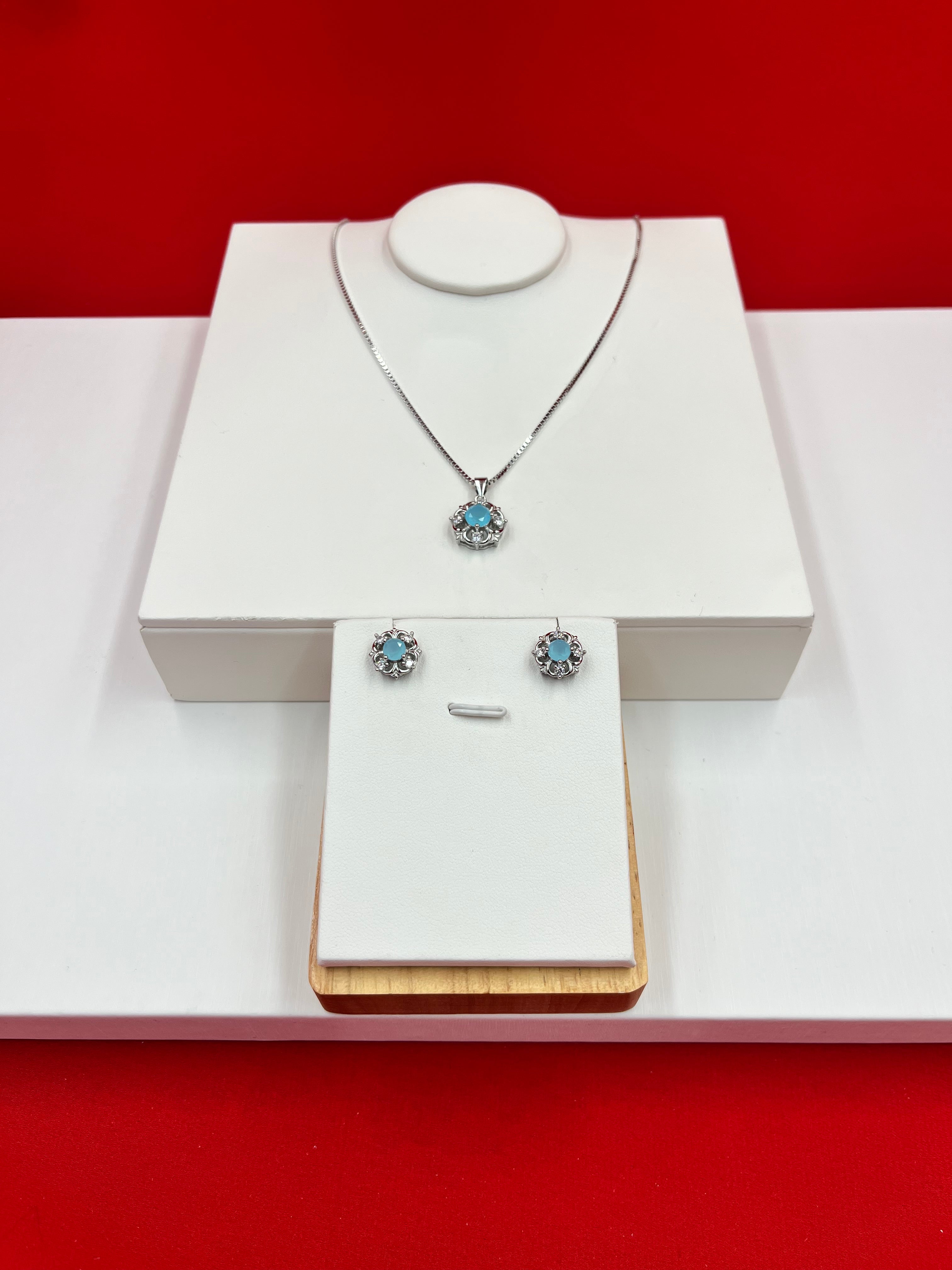 ▪️Stunning Sky blue floral-like pattern Necklace with sleek chain and earrings